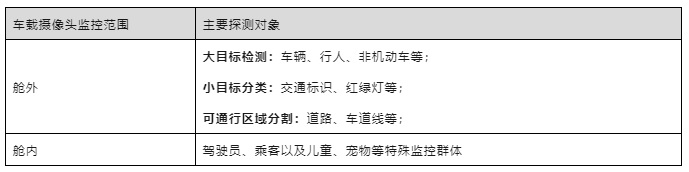 圖表1. 車(chē)載攝像頭核心監(jiān)測(cè)目標(biāo)