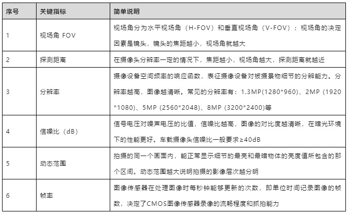 圖表3. 車(chē)載攝像頭關(guān)鍵參考指標(biāo)(信息來(lái)源:《QCT/T 1128 汽車(chē)用攝像頭》、公開(kāi)資料整理)