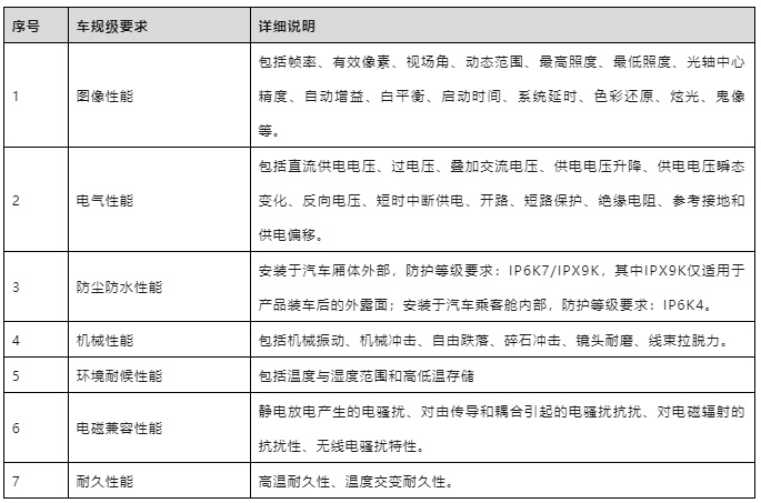 圖表4. 車(chē)載攝像頭車(chē)規(guī)級(jí)要求(信息來(lái)源:《QCT/T 1128 汽車(chē)用攝像頭》、公開(kāi)資料整理)