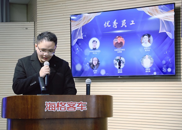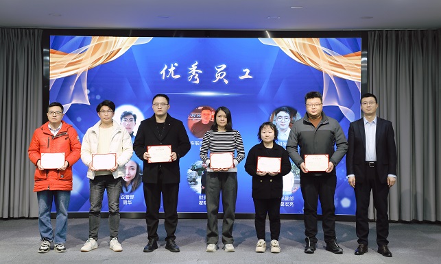 大會第二項議程,表彰2024年度評優獲獎人員。2024年度共評選出2名優秀新人,6名優秀員工,2個優秀團隊,公司領導為獲獎人員及團隊頒獎。