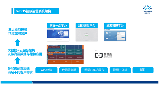 2010年第一代G-BOS智慧運營系統誕生,如今已發展至G-BOS三代。G-BOS三代智慧運營系統的功能更加全面,更加懂得用戶所需,新增六大精細應用:司機行為全景分析、智能視頻查看、油耗精準管理、智能遠程鎖車、班車及校車刷卡、智能車載WiFi,并且三代基于云平臺部署,其功能有計算服務:提供高性能、安全穩定的彈性計算服務;存儲服務:多級數據存儲解決方案,保障數據存儲安全無憂;網絡服務:提供跨運營商、跨地域全網覆蓋的高可用網絡服務;安全服務:有效防御網絡攻擊,幫助客戶降低安全風險,為客戶的數據保駕護航。目前,G-BOS智慧運營系統在全國的裝車量已經超過13萬輛,服務客戶超過2000家。