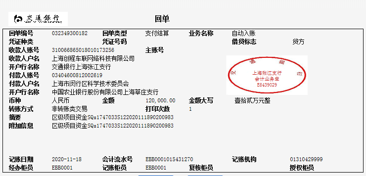 2020年9月30日,閔行區科委組織有關專家,對我司承擔的“基于核心技術創新的高級輔助駕駛系統”項目(編號:2018MH009)進行了驗收,經過專家組討論,我司該項目資料齊全,專項資金使用合理,完成了計劃任務書設定的績效指標,同意項目通過驗收。11月份,我司已收到項目尾款十二萬元整。