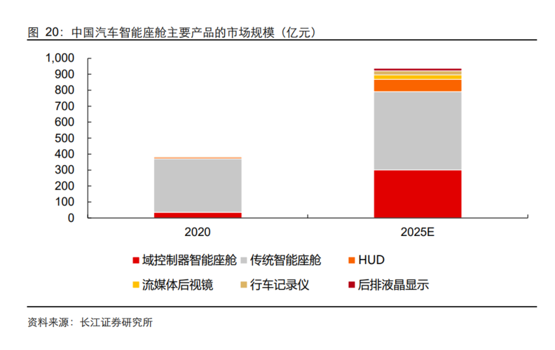 根據公安部交管局信息,2020年我國汽車保有量逆市增長達2.81億輛,位居全球第二。而美國盡管以2.87億居榜首,卻同比下降14.6%,創近10年新低。中國從2009年超越美國成為世界第一產銷量大國到2021年再次超越美國成為世界保有量第一大國,意義深遠,如此巨量也將帶動智能座艙產業高速發展。據ICVTank數據,預計到2025年,國內智能座艙行業市場規模可達1030億元。
