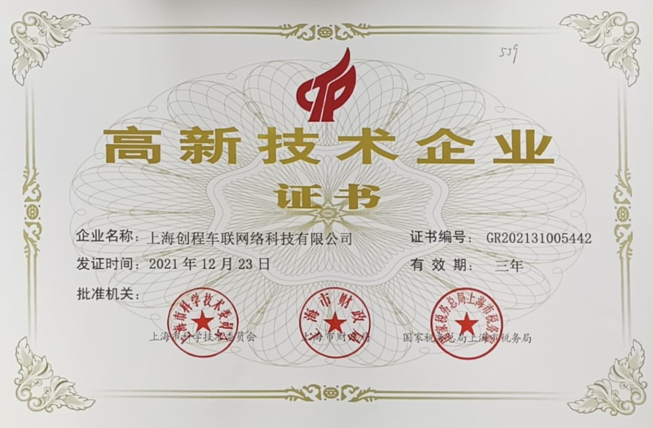 2022年3月,我司收到由上海科學技術委員會、上海市財政局、國家稅務總局、上海市財務局聯合頒發的《高新技術企業證書》,有效期為三年,證書編號GR202131005442。