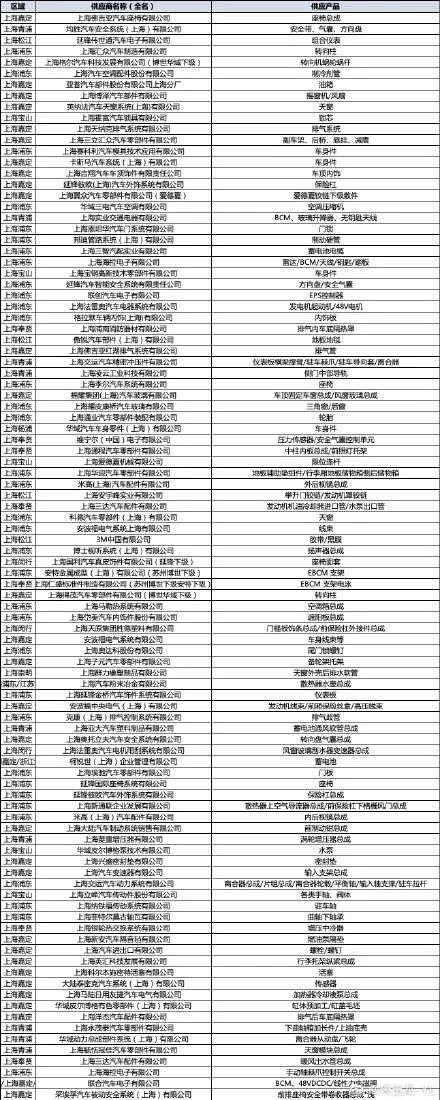 由于上海有著非常完整的汽車零部件產業鏈,和長三角的零部件制造基地一起為中國的汽車工業輸送著足夠有性價比的零部件。下面是排摸的基于上汽集團體系下的產品供應鏈的情況。