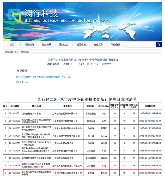 2018年9月6日,我司“基于核心技術(shù)創(chuàng)新的高級輔助駕駛系統(tǒng)”經(jīng)過上海市閔行區(qū)科委專家評審,獲得專家的一致好評,已于9月6日通過項目立項,項目立項后將獲得閔行科委資助資金30萬元。