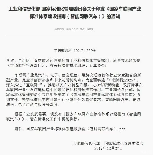 日前,工業(yè)和信息化部國家標(biāo)準(zhǔn)化管理委員向各省、自治區(qū)、直轄市及計(jì)劃單列市工業(yè)和信息化主管部門、質(zhì)量技術(shù)監(jiān)督局(市場監(jiān)管管理部門),有關(guān)標(biāo)準(zhǔn)化技術(shù)組織、行業(yè)協(xié)會下發(fā)了《國家車聯(lián)網(wǎng)產(chǎn)業(yè)標(biāo)準(zhǔn)體系建設(shè)指南(智能網(wǎng)聯(lián)汽車)》的通知。